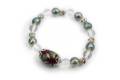 磁器に七宝紋様を色鮮やかに描き天然石ブルー水晶と水晶、間に丸ロンデルをはさめオシャレで高級感のあるブレスレットに仕上がりました。