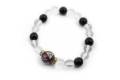 磁器に有田焼の伝統的な柄、七宝紋様を赤で描き天然石水晶とオニキスを組み合わせブレスレットに仕上げました。