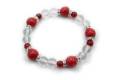 5個の有田焼の磁器玉に真っ赤な赤釉を施し天然石水晶とメノウを組み合わせオシャレなブレスレットにしました。