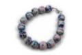 二宮閑山窯独自で開発した釉彩ピンクブルーを施した有田焼の磁器玉をブレスレットにしました。