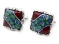 カフスボタン:19mm角付属品:ビロードケース入り有田焼で磁器のカフスボタンを製作しました。ラインが入った高級感のある金枠に17mmと小さな陶磁器に赤七宝を描き赤絵で色をつけ有田焼らしくモダンな雰囲気に仕上がりました。自分用のオシャレなアイテムとしてはもちろん大切な方への贈り物にも大変喜ばれる商品です。※この商品は化粧箱入りですのでラッピング選択で化粧箱を選択せずにご注文下さい。