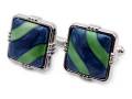 有田焼カフスボタン 染錦グリーンライン 角型