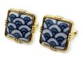 有田焼カフスボタン 染付青海波 角型