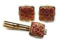 有田焼カフスタイピンセット 赤金唐草 角型
