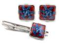 有田焼カフスタイピンセット 錦赤だみ花 角型