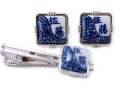 有田焼カフスタイピンセット 名前入 たこ唐草 角型