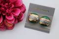 直径:約20mm重量:4g流れ星をイメージした金銀を絵付けしグリーン釉とのコントラストがとてもよく合う有田焼のイヤリングができました。