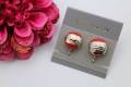 直径:約15mm重量:2g流れ星をイメージした金銀を絵付けし赤釉とのコントラストがとてもよく合う有田焼のイヤリングができました。