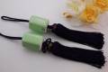 六角形の形に青磁の釉薬で色をだし掛軸を選ばない雰囲気ある風鎮に仕上がりました。