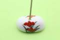 二宮閑山窯のオリジナルアクセサリー・小物雑貨に描いている花の文様も有田焼400年の歴史のなかで描かれてきた文様で数種類の上絵具を使用し小さな商品にも色鮮やかさ・綺麗さを全面に出すように工夫し絵付けしております。