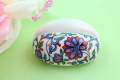 二宮閑山窯のオリジナルアクセサリー・小物雑貨に描いている花の文様も有田焼400年の歴史のなかで描かれてきた文様で数種類の上絵具を使用し小さな商品にも色鮮やかさ・綺麗さを全面に出すように工夫し絵付けしております。