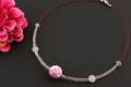有田焼の磁器玉に桜の花を描き天然石ローズクォーツ(8mm玉)をアクセントにカットガラスを使用しオシャレなペンダントに仕上げました。