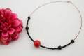 有田焼の磁器玉に鮮やかな赤釉を施し天然石オニキス(8mm玉)をアクセントにカットガラスを使用しオシャレなペンダントに仕上げました。