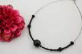 有田焼の磁器玉に漆黒の黒釉を施し天然石オニキス(8mm玉)をアクセントにカットガラスを使用しオシャレなペンダントに仕上げました。