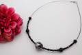 有田焼の黒釉を施した磁器玉に銀彩で桜の花を描き天然石オニキス(8mm玉)をアクセントにカットガラスを使用しオシャレなペンダントに仕上げました。