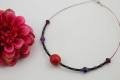 有田焼の磁器玉に鮮やかな赤釉を施し天然石アメジスト(8mm玉)をアクセントにカットガラスを使用しオシャレなペンダントに仕上げました。