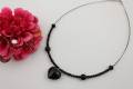 有田焼をハートの形に作り漆黒の黒釉を施し天然石オニキス(8mm玉)をアクセントにカットガラスを使用しオシャレなペンダントに仕上げました。