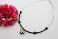 有田焼をハートの形に作りグリーン釉をベースに金銀彩を描き天然石オニキス(8mm玉)をアクセントにカットガラスを使用しオシャレなペンダントに仕上げました。