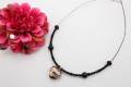 有田焼をハートの形に作りマロン釉をベースに金銀彩を描き天然石オニキス(8mm玉)をアクセントにカットガラスを使用しオシャレなペンダントに仕上げました。