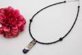 瑠璃釉を施したモダンなバーの形裏表全体に流れ星をイメージした金銀を描き天然石オニキス(8mm玉)をアクセントにカットガラスを贅沢に後ろまで使用しオシャレなペンダントに仕上げました。