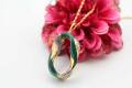 リングの輪をひねった形に作り流れ星をイメージした金銀を流れるように描きグリーン釉を施したオシャレでモダンなペンダントです。