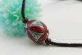 有田焼磁器玉皮紐ペンダント(フリー) 楕円 赤七宝紋様