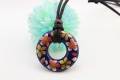 有田焼リング皮紐ペンダント(フリー) 瑠璃桜吹雪