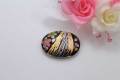 有田焼帯留 流星黒桜吹雪(赤) 楕円型