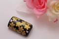 有田焼帯留 黒金桜 筒型