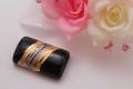 有田焼独特の透明感の黒に流れ星をイメージし金銀を絵付けした帯留めです。