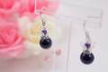 有田焼と天然石のコラボ(Arvo)ピアス(silver925),イヤリング(ロンデル) 有田焼るりブルー+アメジスト