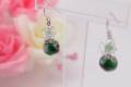 有田焼と天然石のコラボ(Arvo)ピアス(silver925),イヤリング(ロンデル) 有田焼グリーン水玉+アベンチュリン