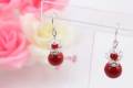 有田焼と天然石のコラボ(Arvo)ピアス(silver925),イヤリング(ロンデル) 有田焼赤+メノウ