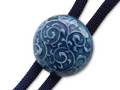藍色をベースに唐草紋様を浮き上がらせるような技法を使ったどんなシャツにも合わせやすい色合いのループタイに仕上がりました。