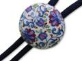 直径:約39mm紐の長さ104cm有田焼で裏面に名前を入れられる磁器のループタイを製作しました。父の日や誕生日などの贈り物にも大変喜ばれております。表面の絵柄には有田焼独特の透明感のある白磁に色鮮やかな花唐草模様を描きました。ループ紐には杉織の上質な紐を使用しております。世界に一つだけの名前が入った有田焼のループタイをプレゼントしてみては♪※ご注文をうけてから手書きにて製作しますので約10~20日ほどかかります。