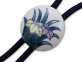 直径:約39mm紐の長さ104cm有田焼で裏面に名前を入れられる磁器のループタイを製作しました。父の日や誕生日などの贈り物にも大変喜ばれております。アヤメの花を繊細に描き花びら一つ一つに色をつけたループタイです。ループ紐には杉織の上質な紐を使用しております。世界に一つだけの名前が入った有田焼のループタイをプレゼントしてみては♪※ご注文をうけてから手書きにて製作しますので約10~20日ほどかかります。