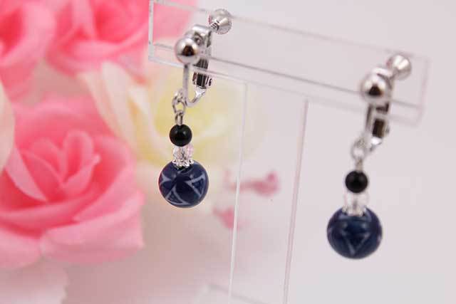 有田焼と天然石のコラボ(Arvo)ピアス(silver925),イヤリング 有田焼呉須七宝+オニキス