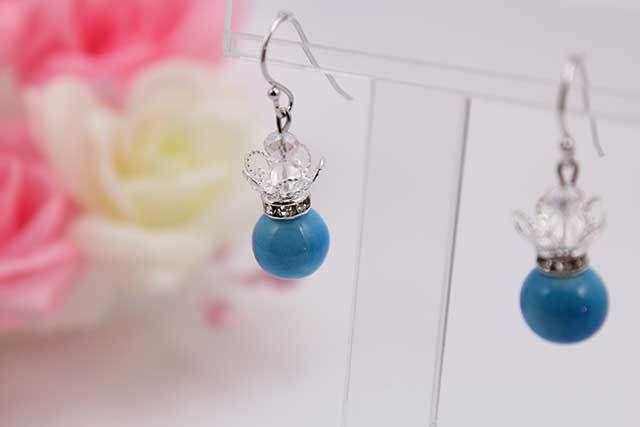 磁器に二宮閑山窯独自で開発した釉彩スカイブルーを施しトルコブルー色に仕上げ天然石水晶との相性もよく綺麗に出来上がりました。