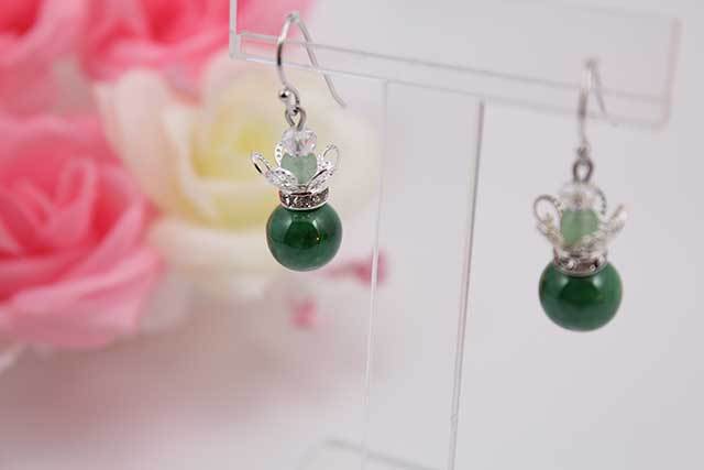 磁器に二宮閑山窯独自で開発した釉彩グリーンを施し天然石アベンチュリンとの相性もよく綺麗に出来上がりました。