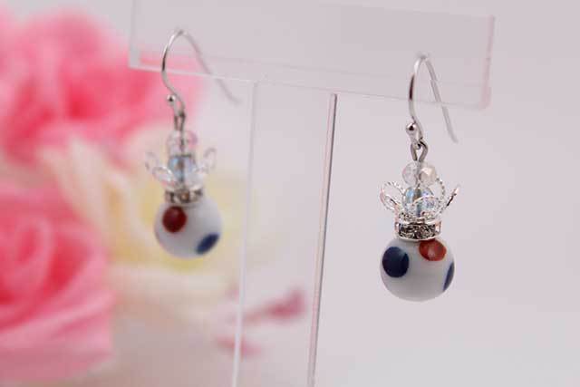有田焼と天然石のコラボ(Arvo)ピアス(silver925),イヤリング(ロンデル) 有田焼水玉紋様+水晶