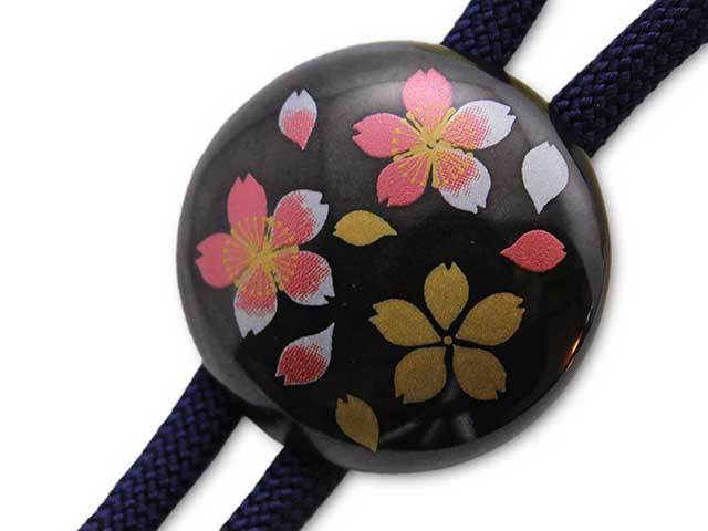 有田焼ループタイ 黒桜吹雪(赤) 丸