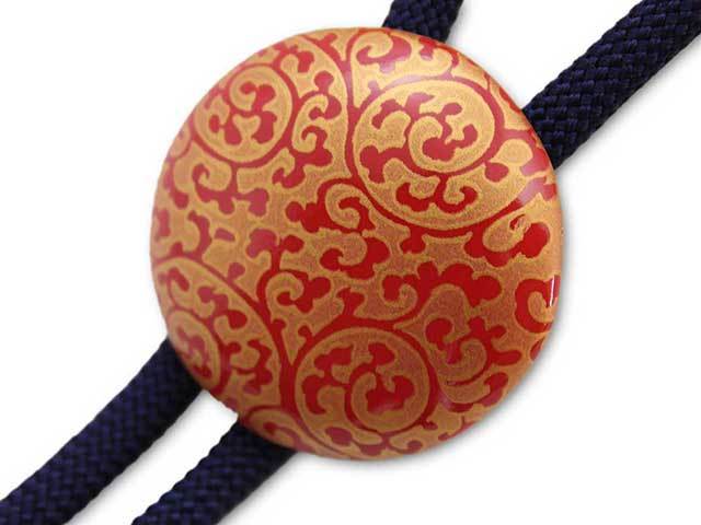 有田焼ループタイ 赤金唐草 丸